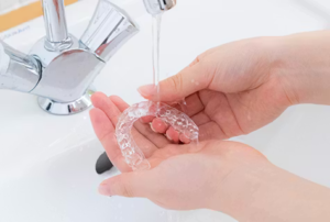 マウスピースを外した後は、まず流水でしっかりとすすぎましょう。唾液や細菌が付着しているため、そのまま放置すると雑菌が繁殖しやすくなります。外したらすぐに洗うことを習慣にしてください。